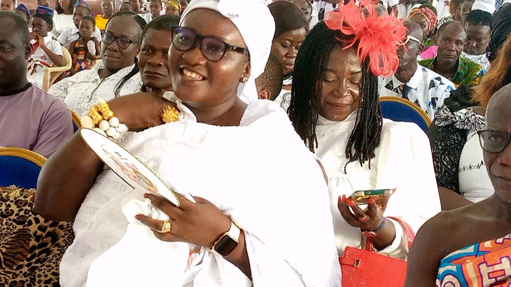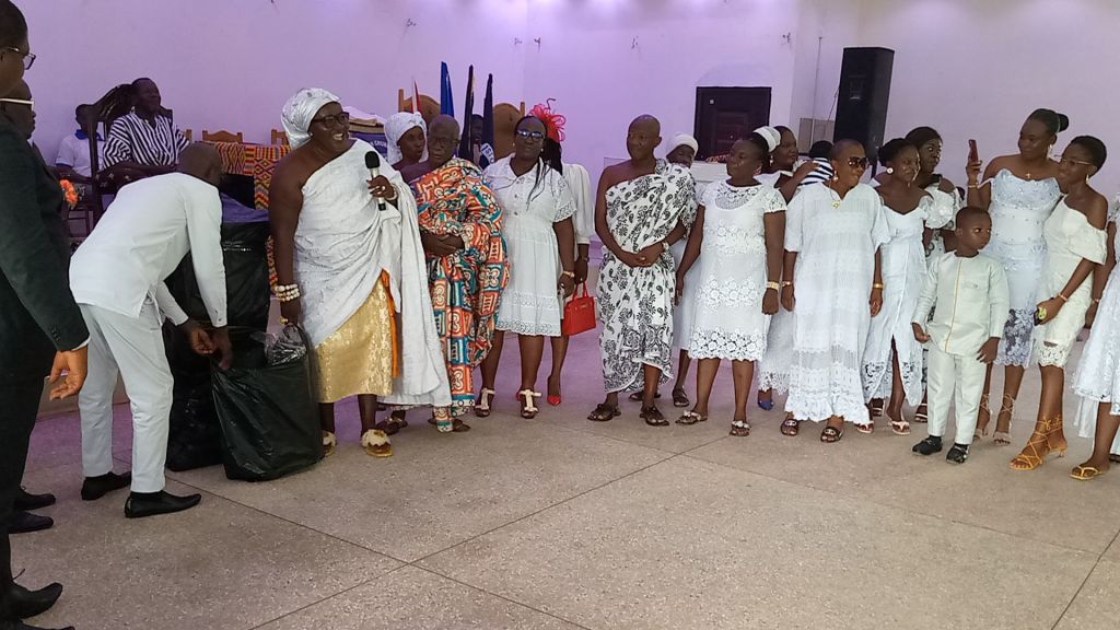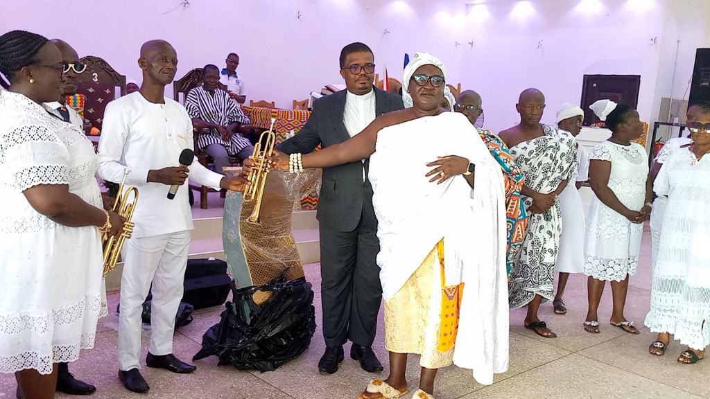 It was occasioned with a thanksgiving service where the Kyidomhene led the family and presented two trumpets and a podium stand to the church where their late mother worshiped when alive.