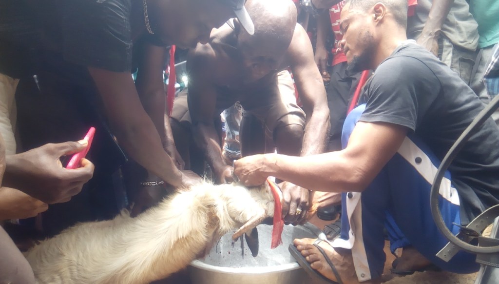 Opanin Appiah Osae slaughtering the sheep.