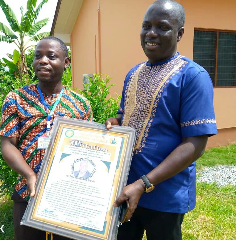 “I am happy because not all are honoured as I have been honoured by the Assembly when they are done with their stewardship and sad because I am leaving a very lovely family of which I am going to miss so much. I thank the staff of the Assembly, assembly members, chiefs, opinion leaders and everyone who was part of my two year stewardship in Abuakwa North. God bless you all”. Mr Jeremiah Amoafo Agyekum.